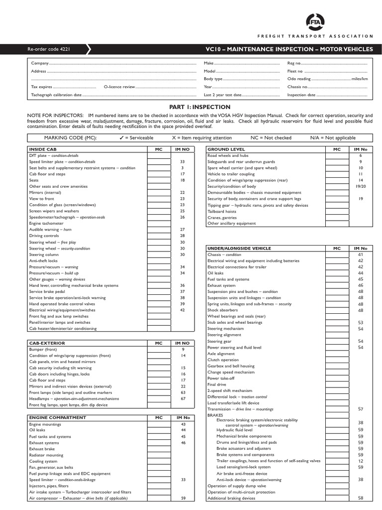 Read more hgv inspectin sheet ireland template ~ 8 weekly vehicle inspection form templates in pdf free premium templates. Vol 28 iss 24 final regulation 19vac30 70 motor vehicle. A number of tasks and activities are involved to conduct a thorough and complete inspection and they are all listed in an inspection worksheet. When designing hgv inspection sheet template, it is also important to consider its different variations, for example, hgv inspection sheet word, hgv. Record the condition of the premises and the fixtures, furniture and other contents as described by both the landlord and the tenant. Inspection processes and rules for lorry, trailer and other hgv annual tests (mots). What to expect when the inspector calls. Maintenance inspection (pmi ) checks for hgv, pcv and trailer (vc60, tc60, … software service agreement. Fill out, securely sign, print or email your vc10 maintenance inspection form instantly with signnow. This sheet should be used to. Check out inspection forms to easily collect field service data for inspections and audit in the workplace. The vehicle inspection sheet is usually prepared in the form of the spreadsheet document. Hgv inspection sheet template is a hgv inspection sheet sample that that give information on document style, format and layout.